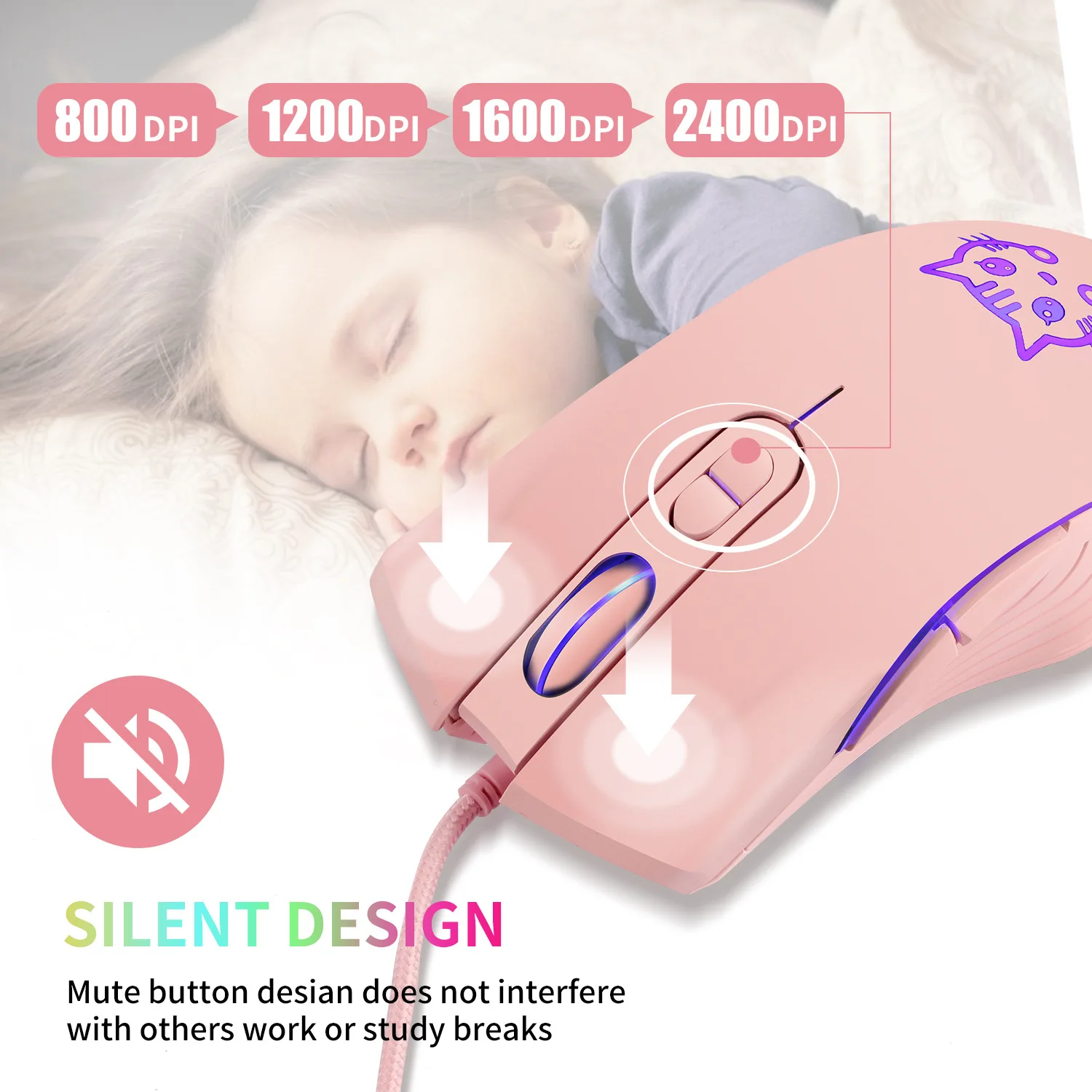 USB Wired Gaming Mouse Pink Computer Professional E-sports Mause 2400 DPI Colorful Backlit Silent Mice for Lol Data Laptop Pc